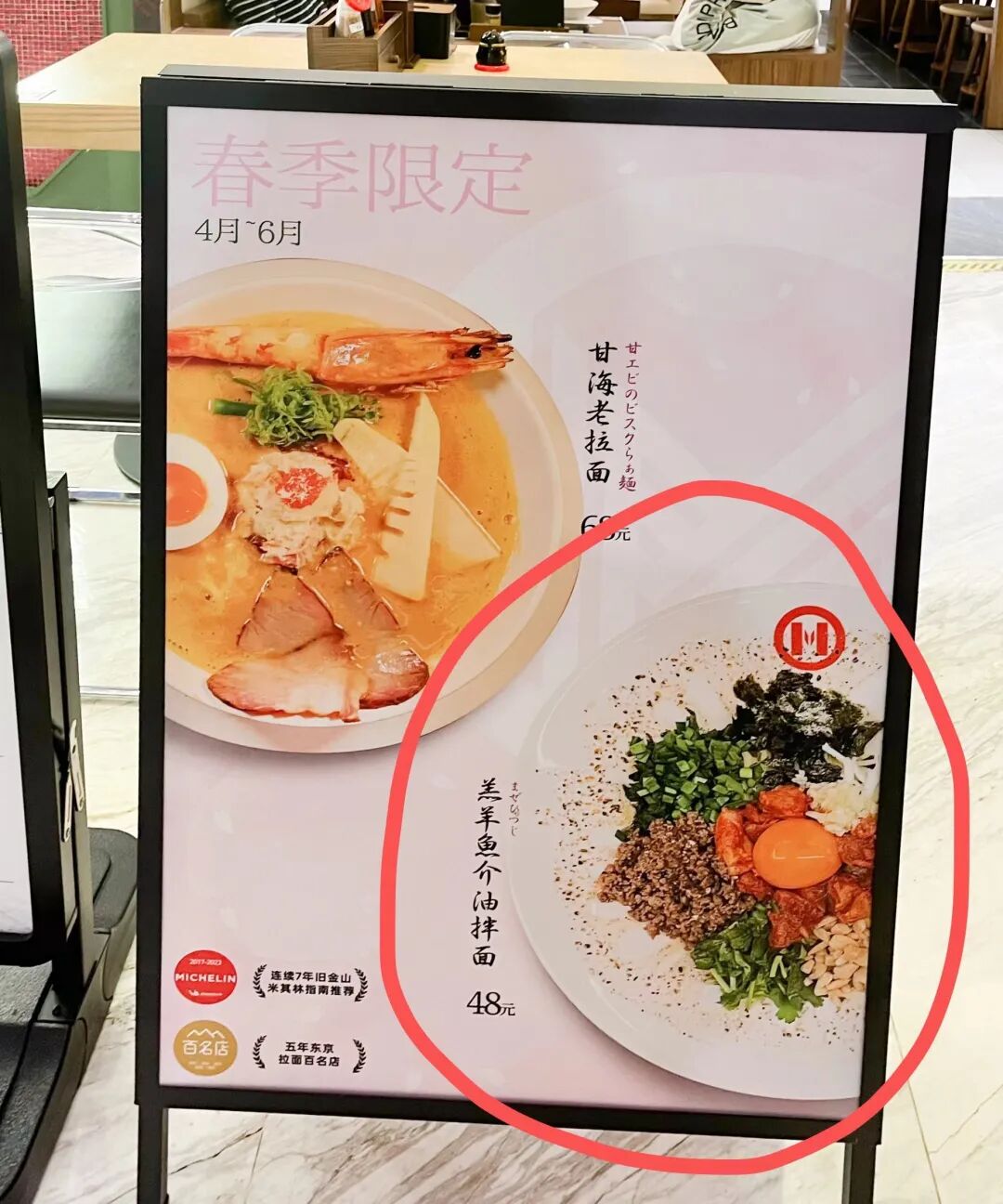 这一碗,要抓紧吃了:4~6月的限定口味,叫做羔羊鱼介油拌面。