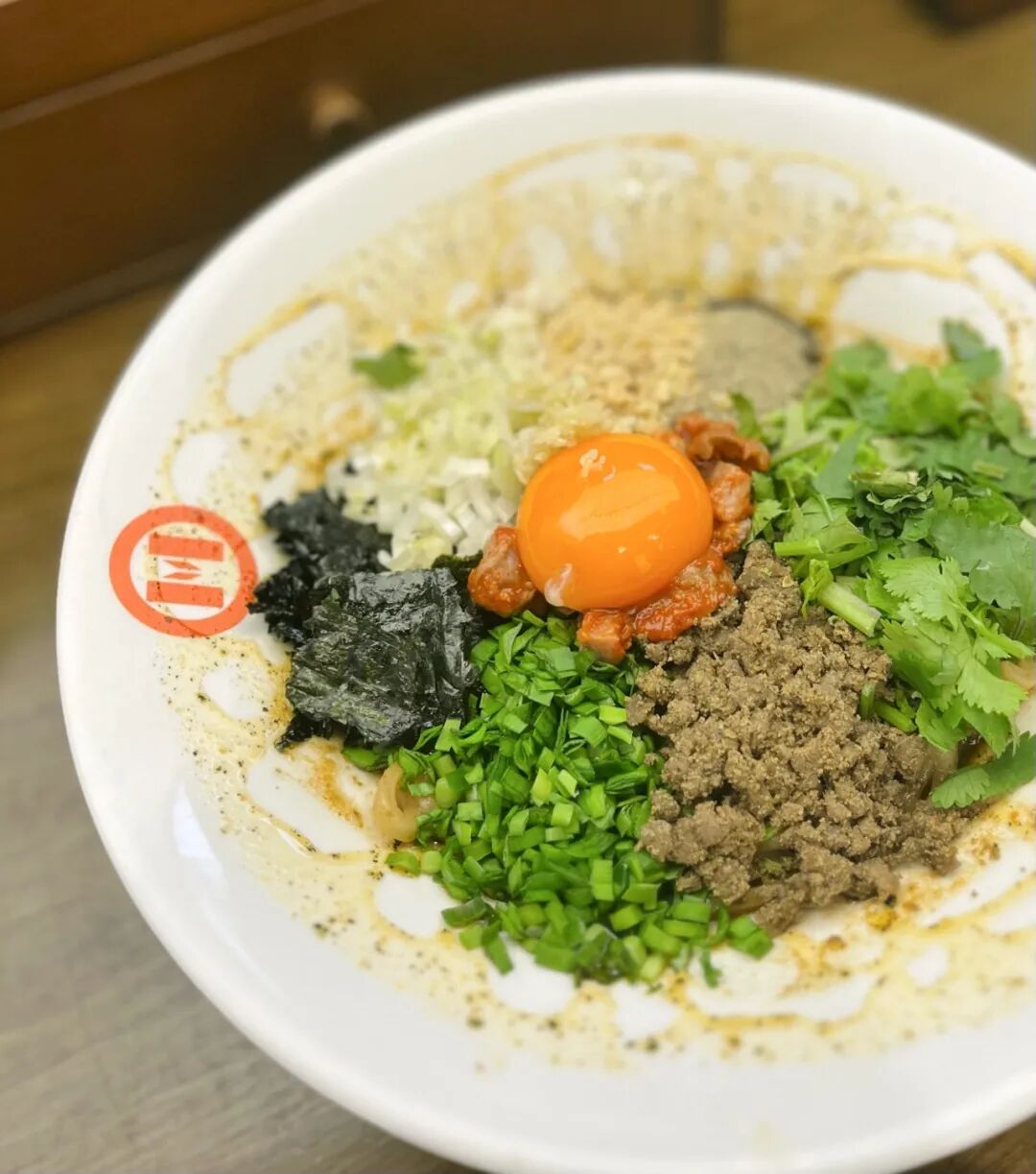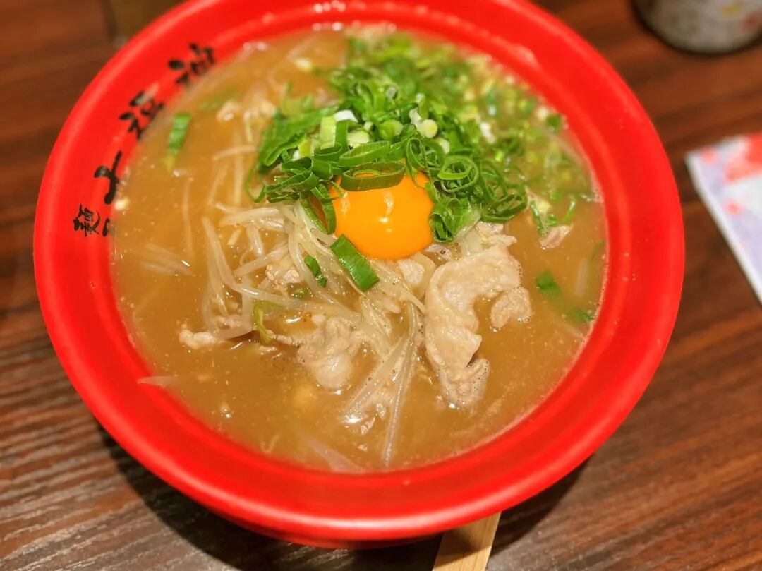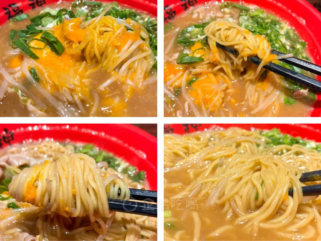 最大特点就是汤比一般拉面更浓稠,接近北方打卤面勾了薄芡的稠滑状态(但没勾芡,都是纯纯汤底里胶原蛋白那种微微粘嘴感),还会打个生鸡蛋,进去增加汤体稠厚度(生鸡蛋是德岛拉面标志性特色之一)。