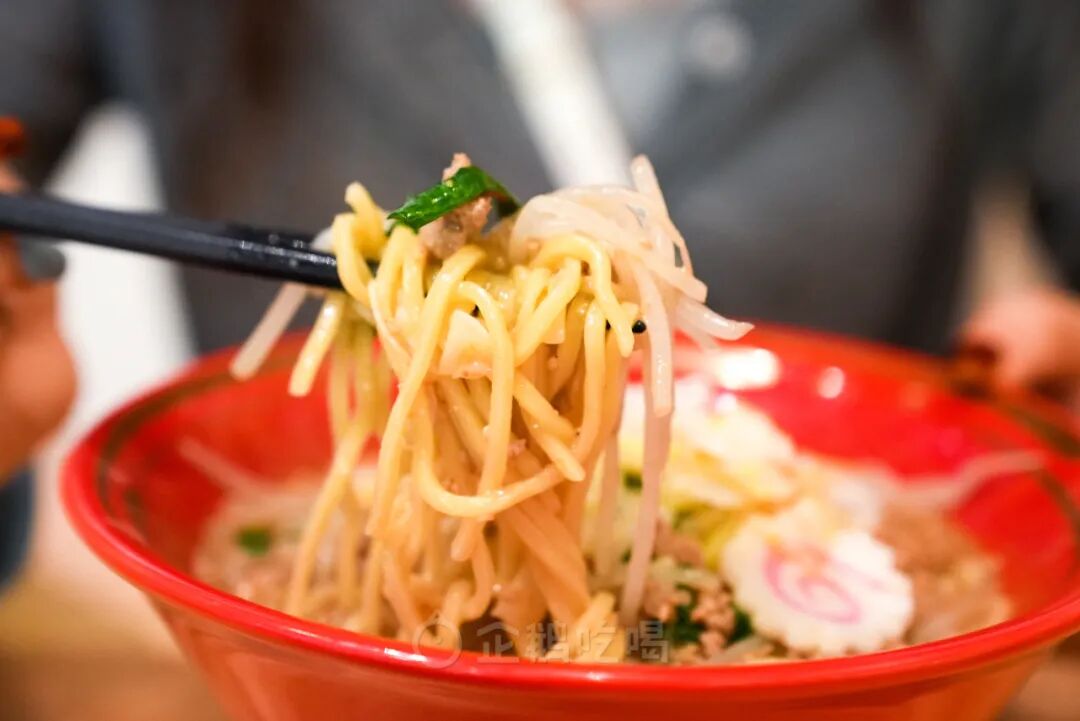 它偏向于德岛拉面流派里的“茶系”(加了酱油的汤显为茶色):