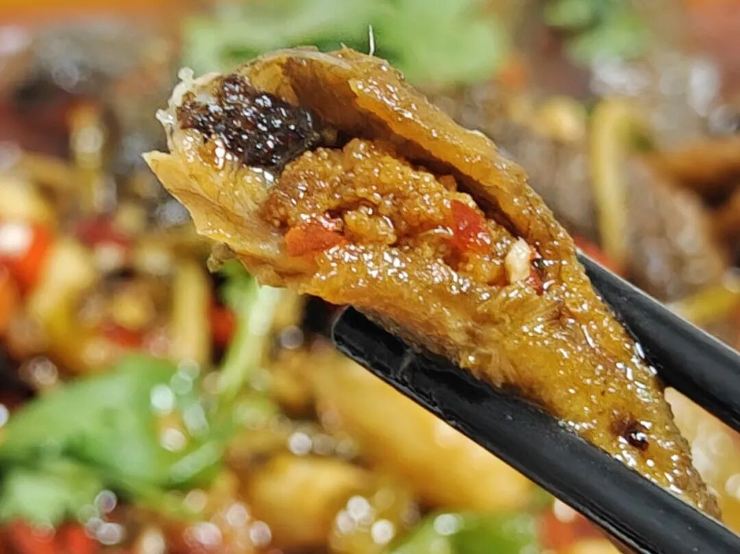 但这家多了一步预处理:先腌,再放入六成油温的锅中煎出虎皮——相当于把腌料锁在肉里。更比寻常泥鳅多了一层表皮美拉德焦香。