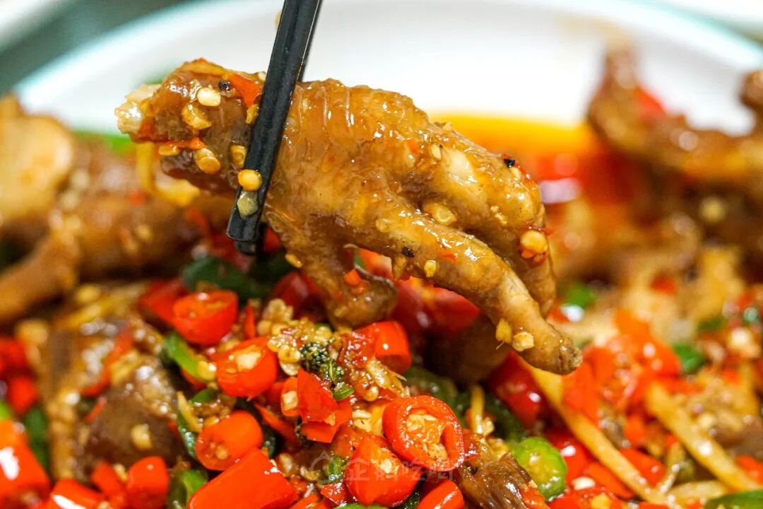 冷知识:艾叶鸡脚里面没有艾叶。艾叶是自贡的一个古镇,当地鸡脚在自贡小有名气。大部分自贡餐厅做艾叶鸡脚,会把处理好的鸡脚炒香,再加高汤把鸡脚煮软。