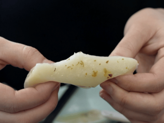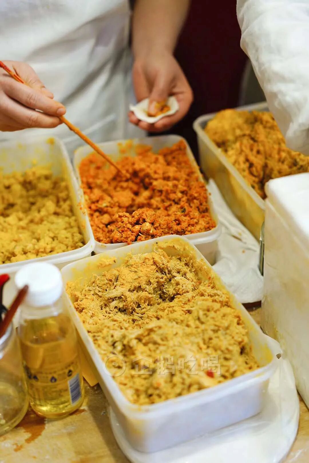 老板曾经透露,他们一斤面粉里会加一颗鸭蛋黄;作为吃遍上海小笼的我们,也是第一次听到有这样的面团配方(通常都是冷水和面而已)。