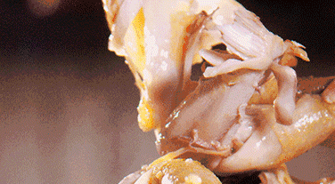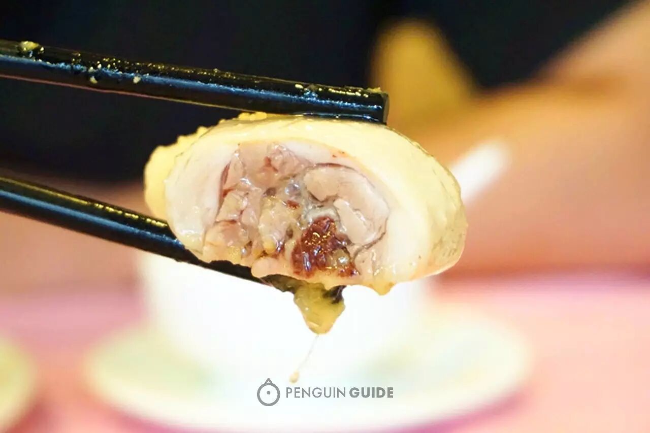 企鹅君严重怀疑此鸡升天前一定被师傅舒舒服服地按摩过一番。不然遗容不会如此享受地闭上双眼,而且肉质确实紧致得让牙齿欲罢不能。即使不蘸酱料,也能嚼出一份西柠般清鲜咸鲜。再细吮鸡骨,感受“骨都有味”的极致——“再来一口吧!”
