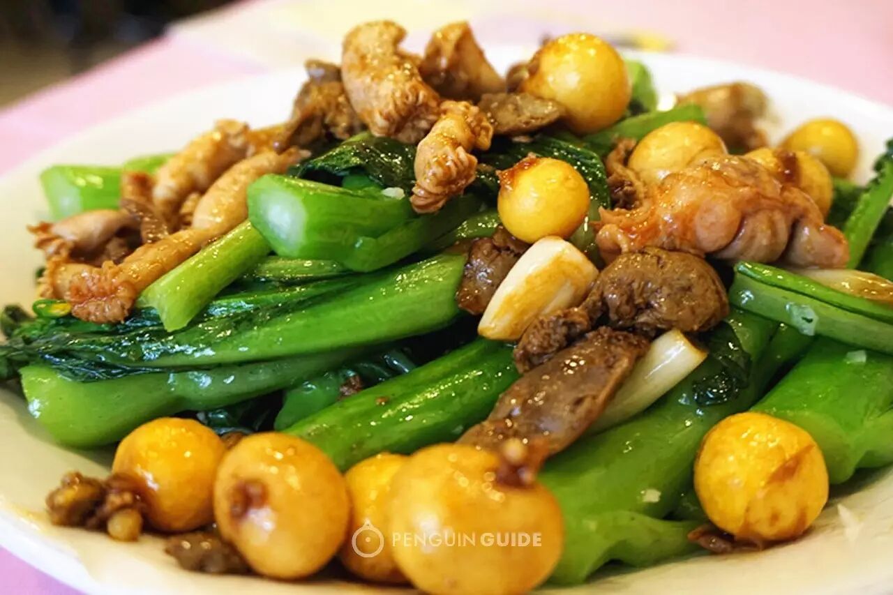 除了招牌清平鸡,鸡杂菜心也是友联的一道名菜。