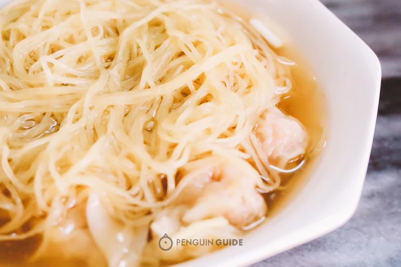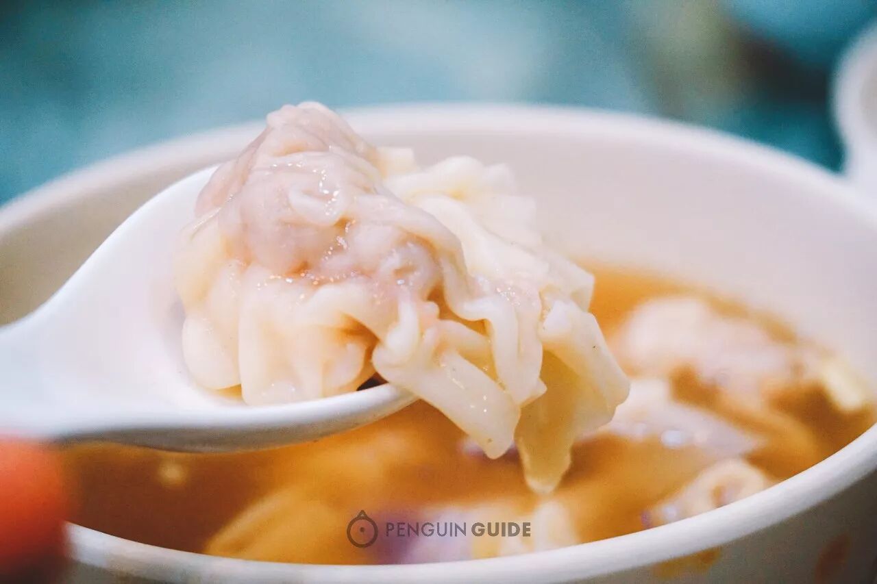 云吞如同汤底一般质朴,只有传统的三七分肥瘦猪肉,皮薄馅嫩,肥瘦得宜,“咻”一声即能滑入口中,十分过瘾。