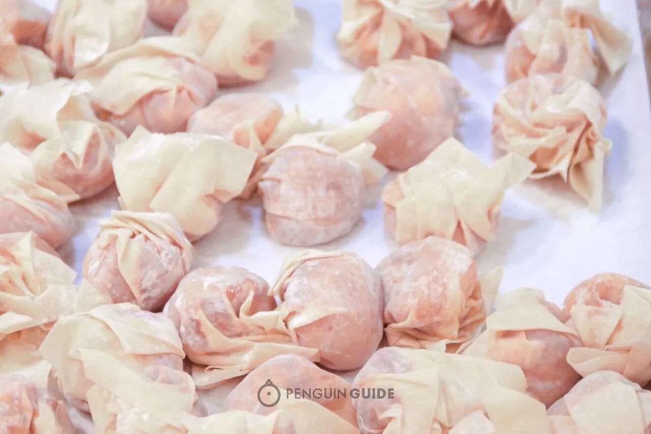 传统口味是三七分肥瘦肉,鲜虾馅则是八二分虾仁瘦肉。同时皆要加入新鲜磨好的鸡蛋、黄姜、大地鱼粉和芝麻粉,清而不寡,鲜甜盈口。