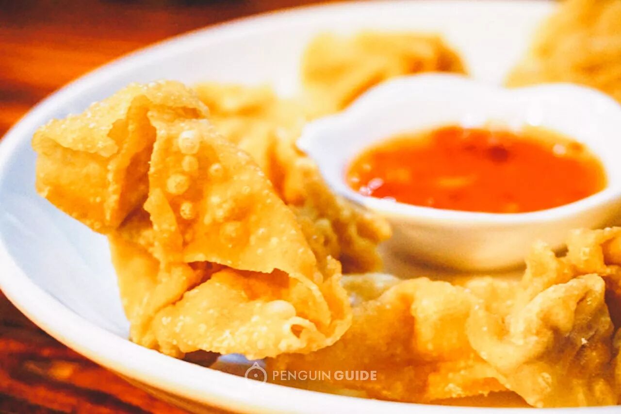 除了细蓉云吞外,炸云吞也是这里的招牌特色。外皮炸得金黄酥脆,蘸上特制酸甜酱,简直让人食欲大开。无怪乎成家后的老广们,至今仍要带上子女们前来排队食面,为他们开展“受吃一生”的广式云吞面启蒙课堂。