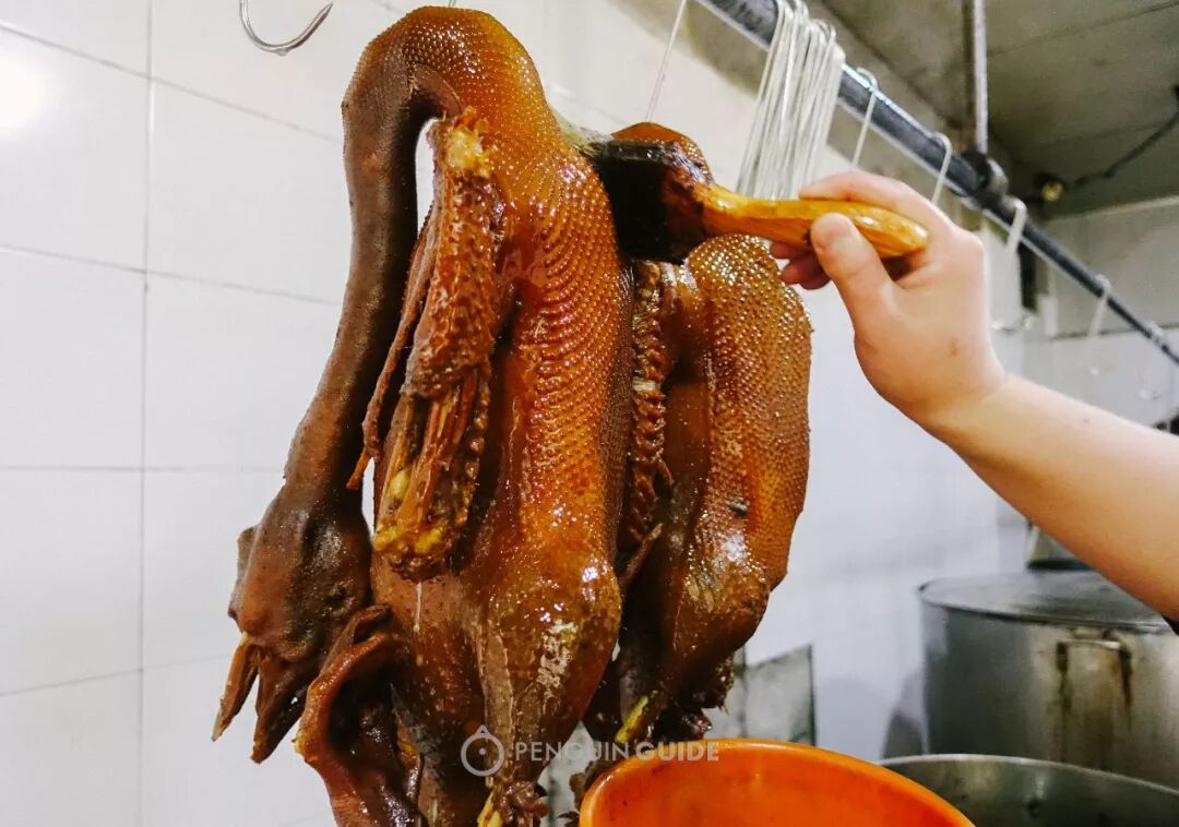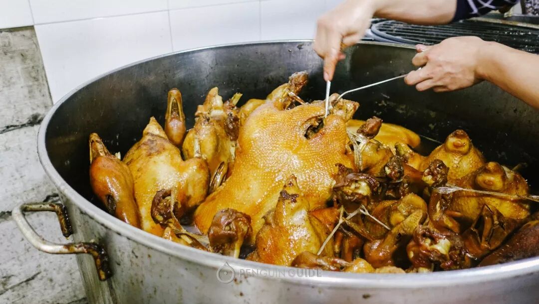 传统的澄海苏南卤鹅,有个名字叫“贡咕”卤鹅,指的就是文火煮制时,气泡顶破表面鹅油层发出的“贡咕”声。