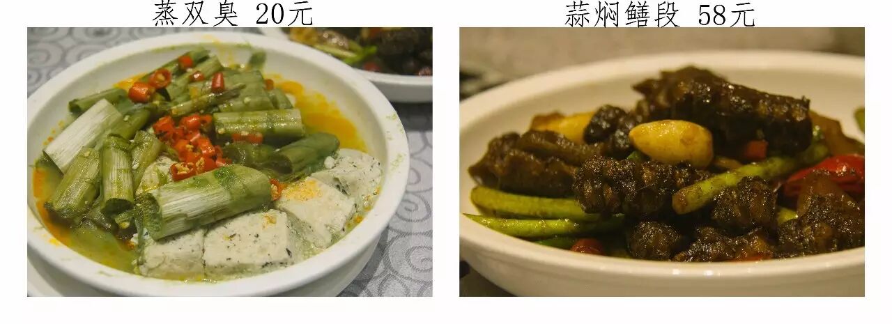 推荐菜:油焖春笋,野生甲鱼汤,蒸双臭
