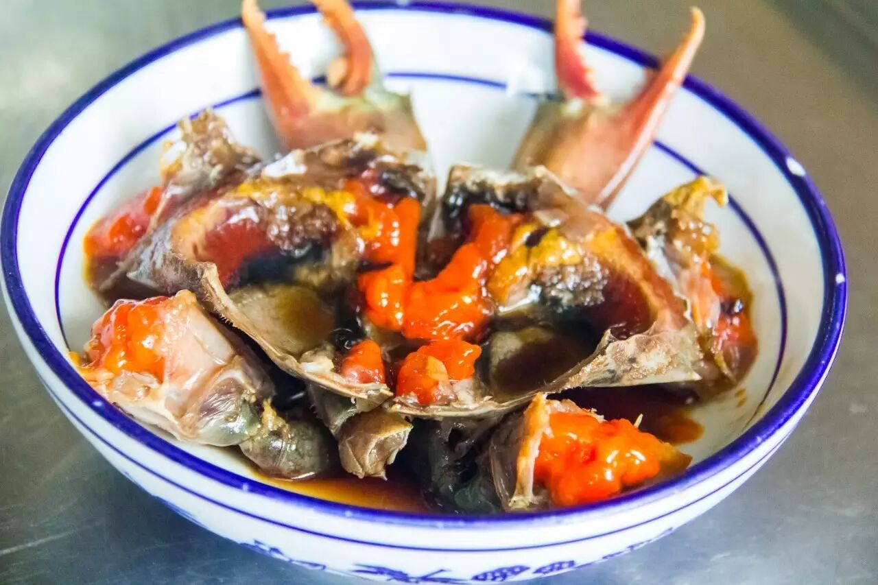 香芋煲也是现煲的,芋头烧得沙沙糊糊,带点微甜,不见冒烟但十分烫口;醉蟹用了时令的青膏蟹,拿黄酒呛,酒香已经醉进蟹壳,蟹膏丰满,吮一口清清凉凉。