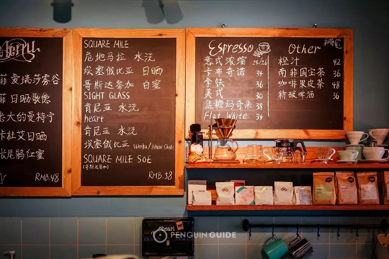 手冲咖啡除了常备的哥伦比亚、曼特宁和耶加雪菲,还可以喝到来自heart、sight glass等国外品牌的咖啡豆。