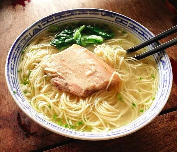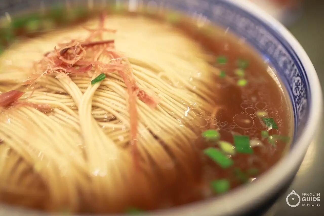 汤,汤一定要清而不油,整体视觉是透亮,正宗苏式汤面汤色透明如琥珀。