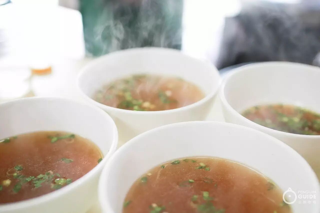 至此,一份极富苏州特色的汤底骨架基本就搭建好了。上好的面汤不见任何杂质,喷香扑鼻,鲜而口不干,咸淡适中。