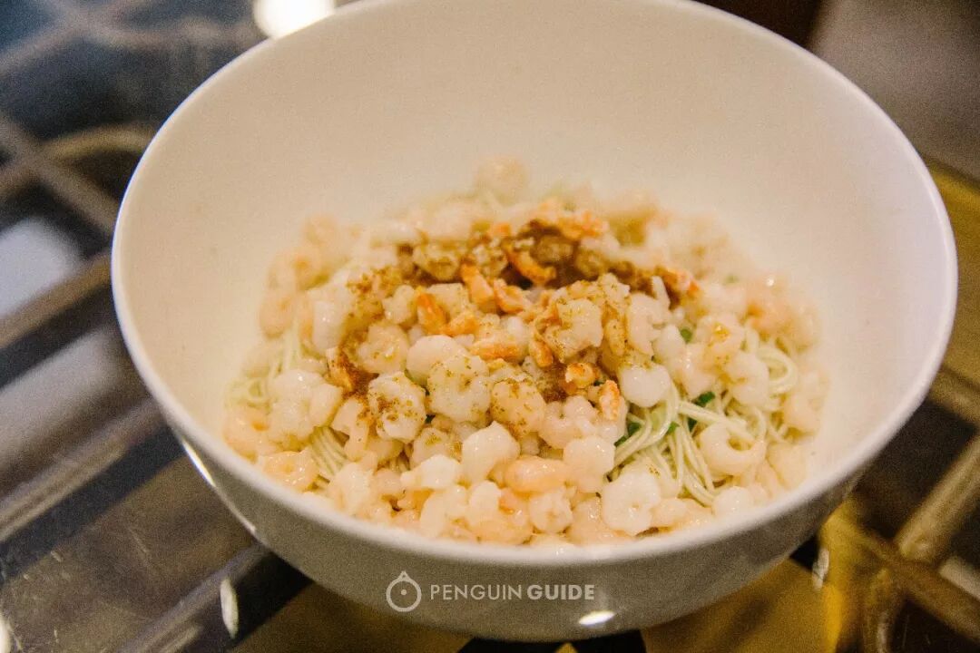 御面斋的三虾面,和主流做法有不少区别:御面斋将三样分开炒,最后再浇虾籽、虾脑;同时烧了葱油,能吃到非常鲜明的葱香味: