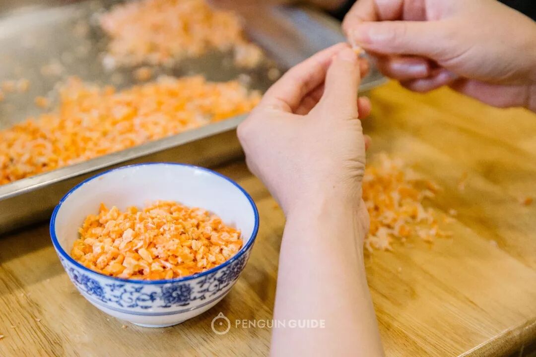单磨虾籽这一步,就看师傅忙活了一早上……