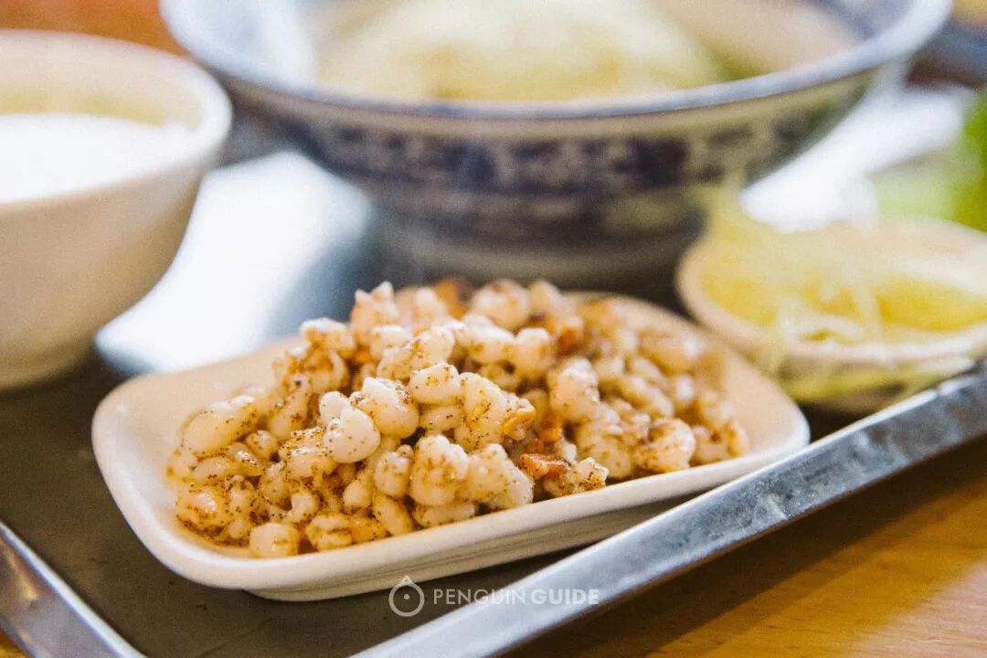 还没完!有些店会把虾脑表面一层白色外衣剥掉,有人说外衣很腥,影响味道,也有大美食家陆文夫做背书:他说虾脑要像玛瑙一样干净才算好看。