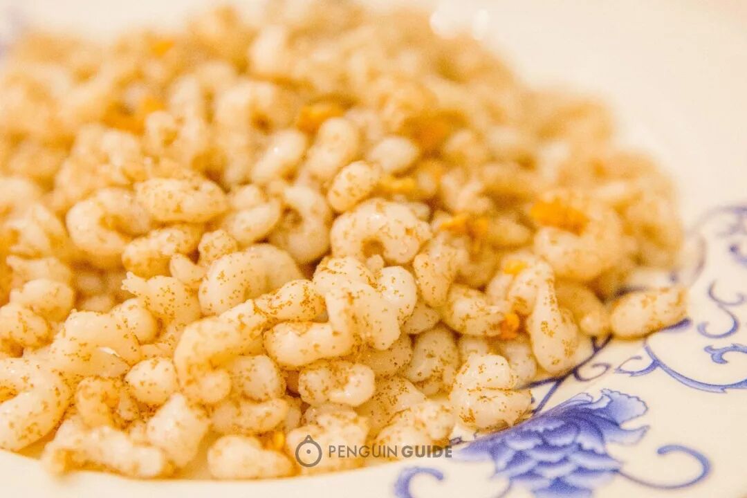 一盘要价258,好在分量也是满当,大概等于面馆里四人份的三虾浇头。和御面斋的做法一样,也是炒好虾仁后再浇虾籽。虾脑紧实,虾仁嫩滑,虾籽鲜香,的确不负美名。