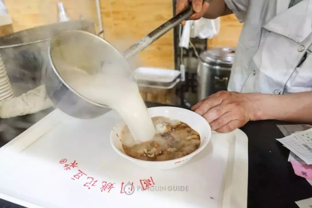 豆浆本身平凡无奇,但加了脆脆猪油渣咸菜虾米香菜酱油,摇身一变成了碗液态豪华豆腐花。