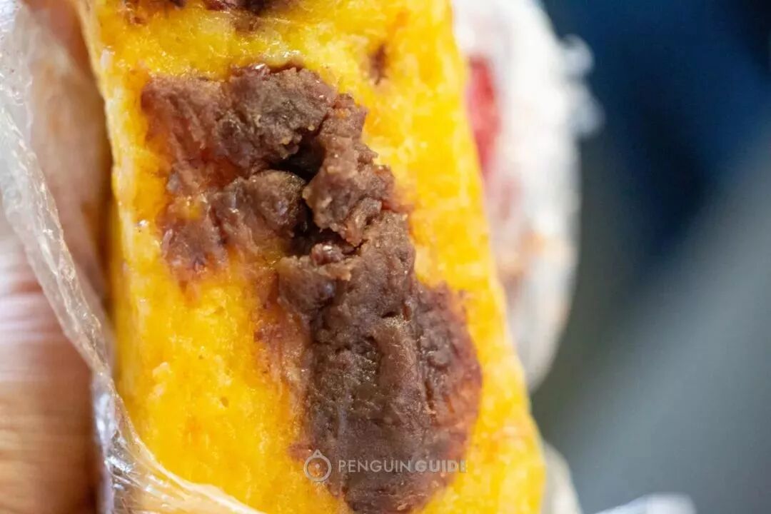 这块南瓜豆沙松糕也好吃,豆沙都是自己店里做,颗粒分明,红豆馅有沙沙的质地,还能咬到柔韧的猪油。