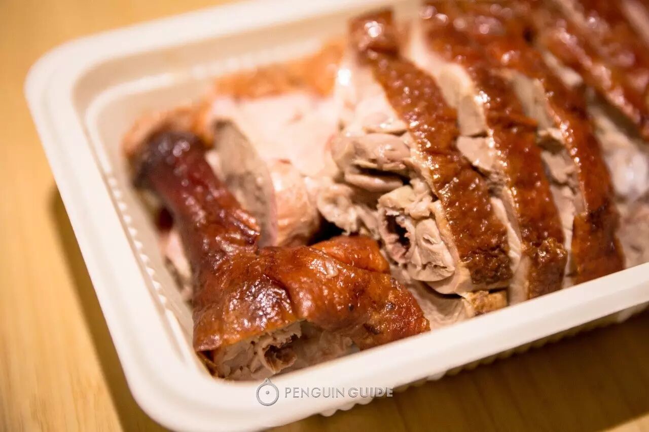 橱窗后的烤鸭红亮油润,隔着橱窗香味就霸气地迅速攻占了鼻腔。店里的伙计手艺熟练,噌噌几下切出整整齐齐的一盒,舀一勺热醇的卤子,打包一起递给等待的新老客们。