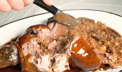 掐头去尾,掏空花花肠子,塞进糯糯的八宝饭,再包裹成葫芦状烤制,一整个流程要耗费6小时。