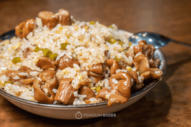 切的过程也很享受,看店主拿小刀顺溜地划拉开鸭肚子,八宝饭从肚里裸露出来。一勺子舀下烤鸭和饭,蘸点酱料,感慨鸭死得好值啊……(dbq鸭鸭,可是你真的好好吃