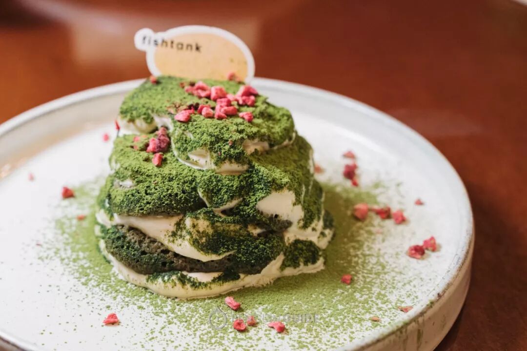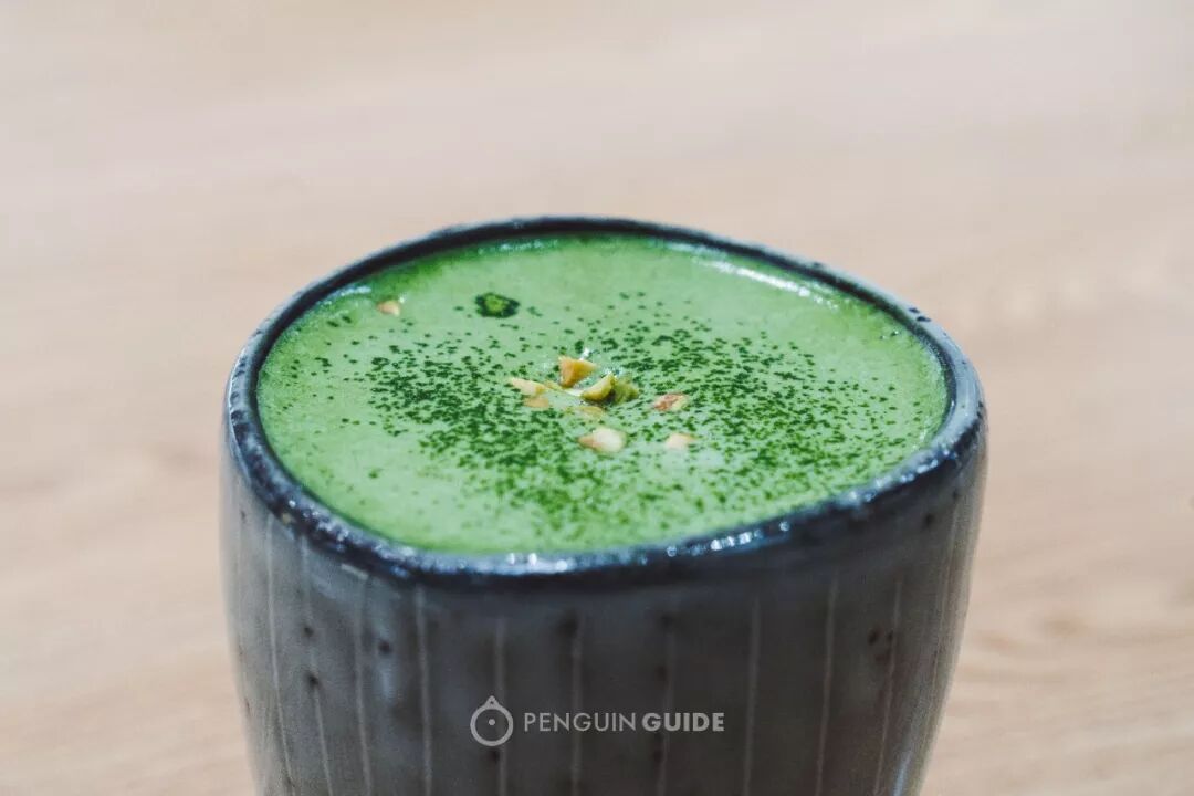 一杯在普通的抹茶拿铁里加了点巧思,兑上了点点开心果,甜味更突出了。
