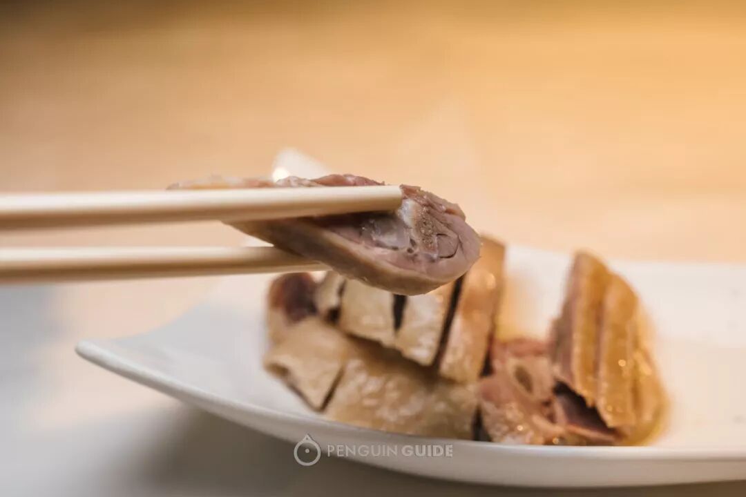 切1/4只干净利落的盐水鸭,鸭肉紧致,盐分刚好。