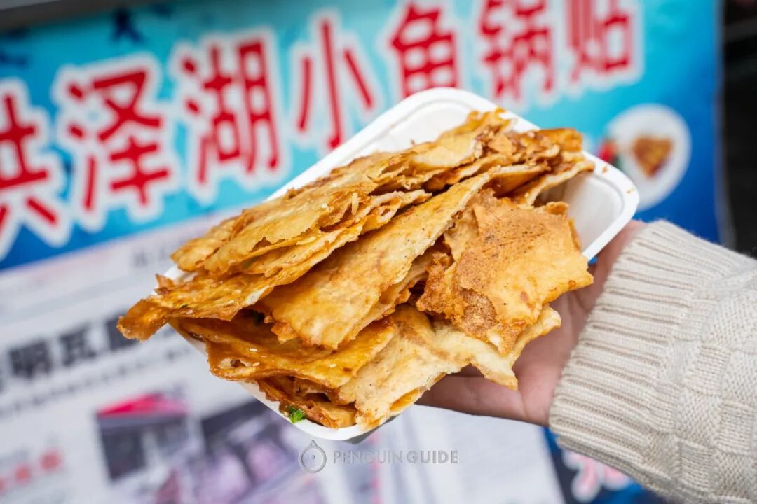 小鱼锅贴没有小鱼也不是锅贴,而是用鱼卤汁荡漾开来的一张面饼。