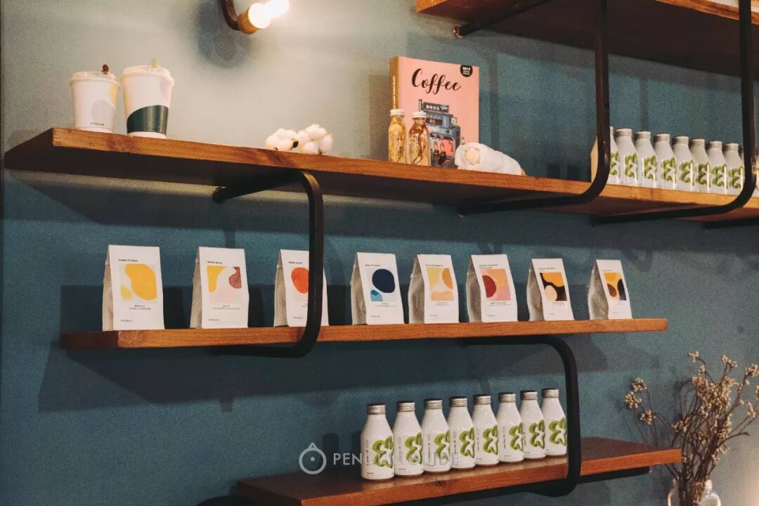 店里有卖豆子,袋装设计也很好看,撞色水滴拼在一起,色调代表着口感。