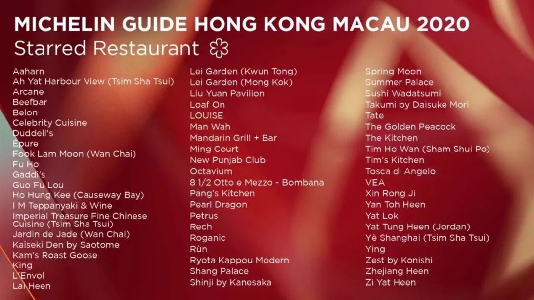 ①刚刚出炉的:2020年香港澳门米其林指南在今天公布了名单,共有90家餐厅入榜,香港70家,澳门20家。其中一星61家,二星19家,三星10家。
