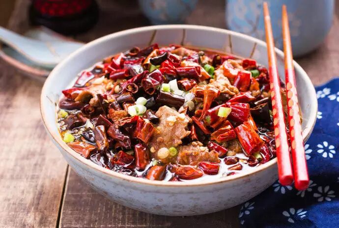 川菜的特点,是突出麻、辣、香、鲜、油大、味厚,并重用“三椒”(辣椒、花椒、胡椒)和鲜姜。