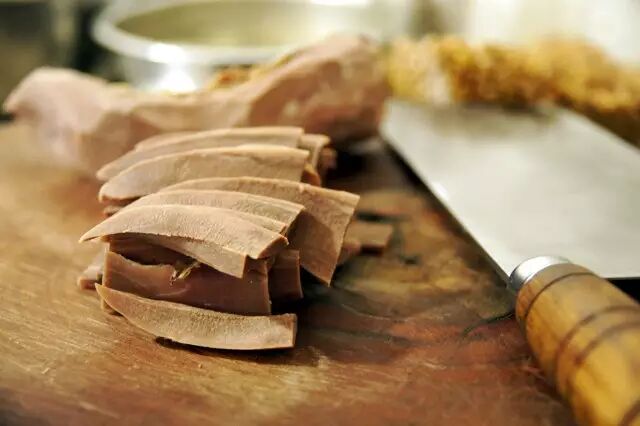 老饕的吃法:先把上下颚掰开,咬出兔舌,再吃兔腮;然后啃兔脸,吃干净外部的肉,最后吮脑花。“耳光肉”是整个兔头的亮点,肉质紧实,纹理清晰,吃在嘴里能分辨出一丝丝的肉纤维。