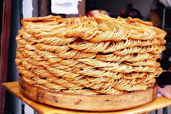 油茶是川渝一带的特色,像面条一样又脆又细的馓子在浓稠的油茶上堆得冒尖,油茶咸香细腻,吃下周身都暖洋洋的。