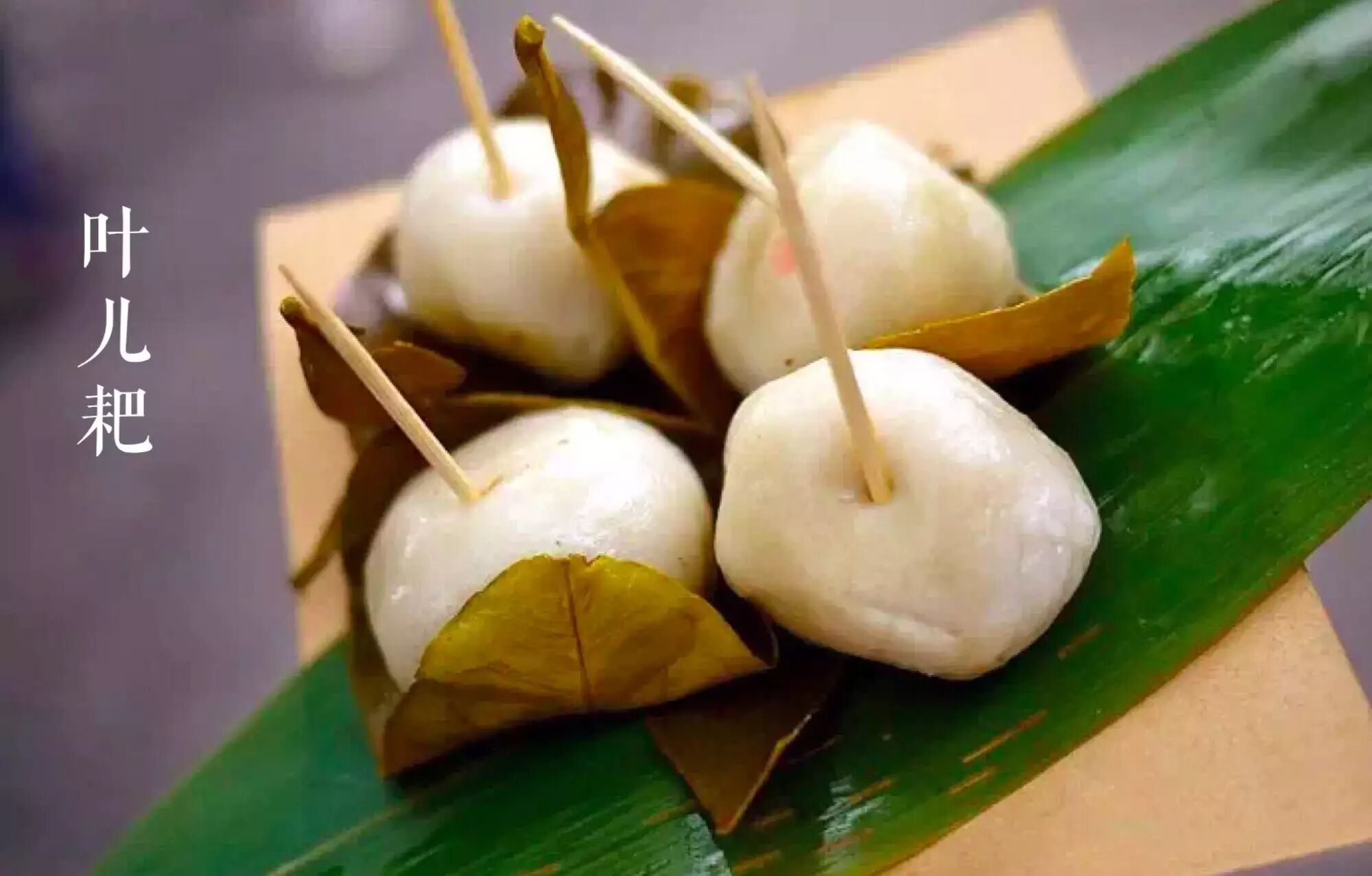 叶儿耙要用七分糯米三分大米制成米粉,然后往里面填入加了宜宾芽菜的咸鲜肉馅,或者加了黑白芝麻的猪油白糖馅,裹上巴叶蒸熟后,绿叶的清香会渗入糯米团中。