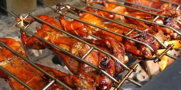 烤好的兔子颜色金棕,轻轻用手一拉就可以把肉扯下。无论是五香还是麻辣,兔肉厚处醇香粑软,肉薄之处酥香脆爽,细细咀嚼之后齿间久久留香。