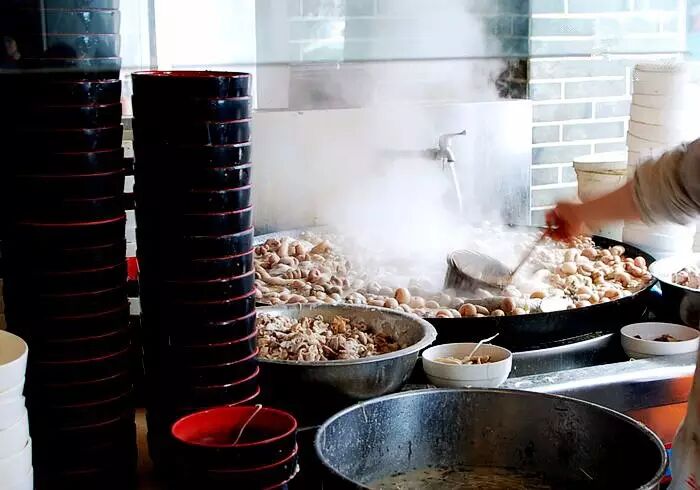 对了,一定要加上一份冒节子。节子是一段打了节的肥肠,在饱浸汤汁后变得胀胀鼓鼓,咬的时候要小心汁水飞溅出来。