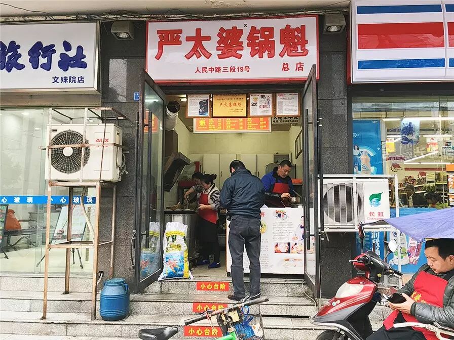 被誉为“蓉城第一锅魁”的严太婆锅魁,散落在城市各处,而最得食客追捧的就要数坐落于文殊院附近的老店,有时还能看见严太婆本人坐镇。