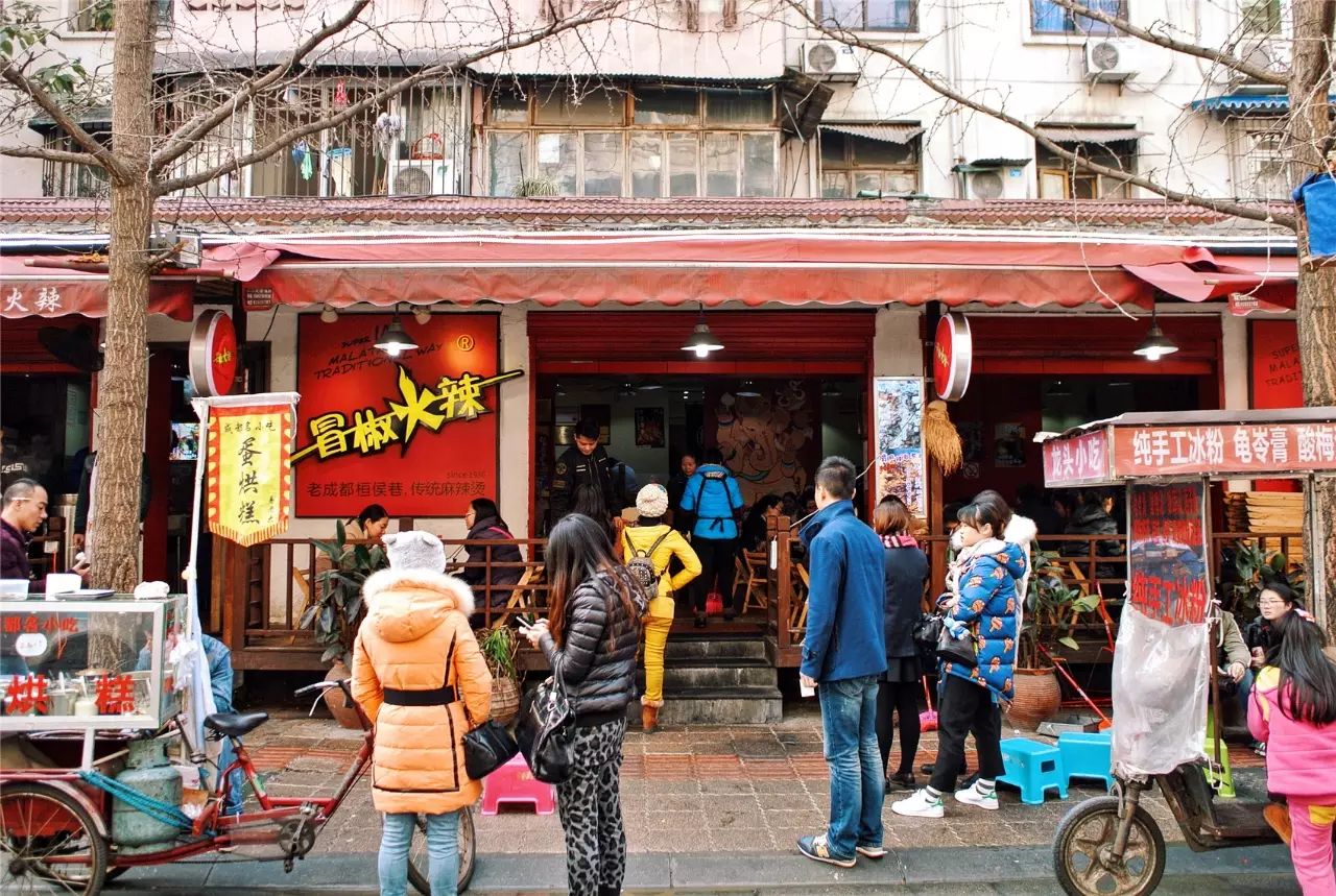 冒椒火辣在四川话里是“焦头烂额+火冒三丈”的意思。此店还未开门,便有精明的客人在街道边上等候,只要腿短一些走慢了几步路,就会眼睁睁看着原本属于你的号落于他人的手中,此时,用“冒椒火辣”来形容你的心情再贴切不过。