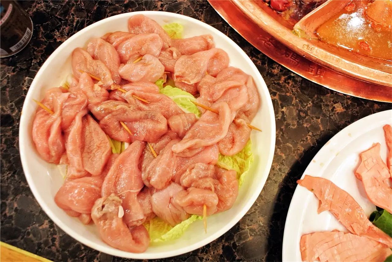 众多荤中,牛舌尤为出色,香弹入味有嚼劲,保留了牛舌的鲜美。火锅店的稀少品种还有鱼肚,处理干净后的鱼肚涮后吃起来爽脆嫩滑,一口一片,煮得越久反而更脆。