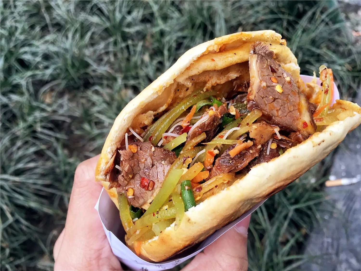 从严太婆手中接过牛肉锅魁时,能感受到实在的沉甸甸。牛肉是腱子肉,满是韧劲的肉香味与锅魁堪称天仙配,表皮脆口,内里柔韧,层层分明。