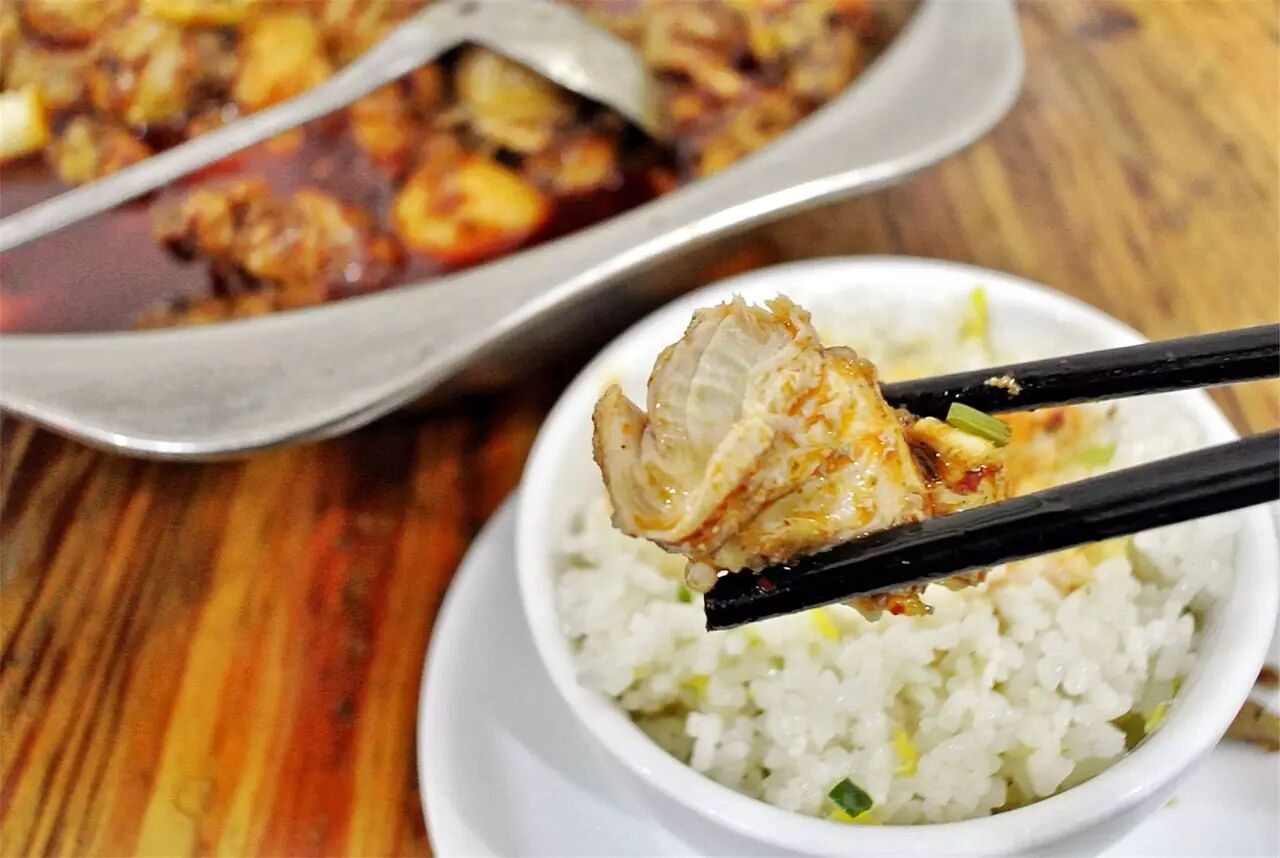紧接着是吃鸡,鸡肉本身不嫩滑,甚至还带点柴,甚为重要的炒料也不够香,吃起来满嘴就是盐巴、味精、辣椒的味道,咸得微微泛苦,再也没有了以前辣而香的味道了。