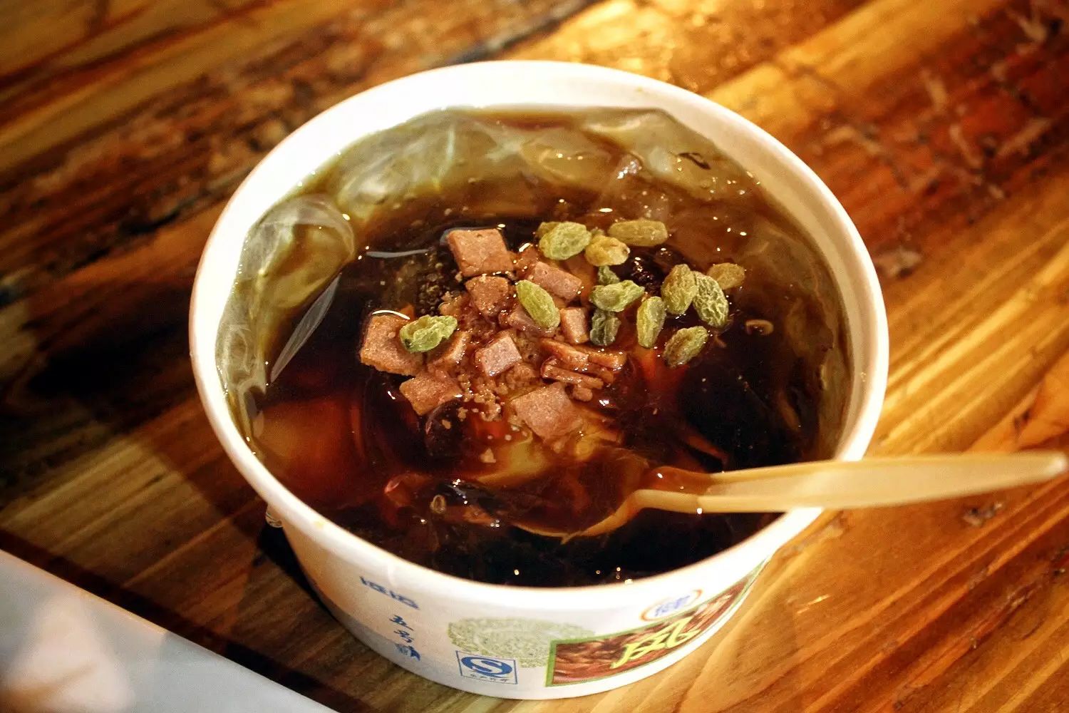 在这里,啤酒不是烤串的最佳搭档,冰粉才是。门口小车里的冰粉几乎是到这里吃烧烤的人必点,热乎乎的烤串配上凉透心的冰粉,冰火两重天。