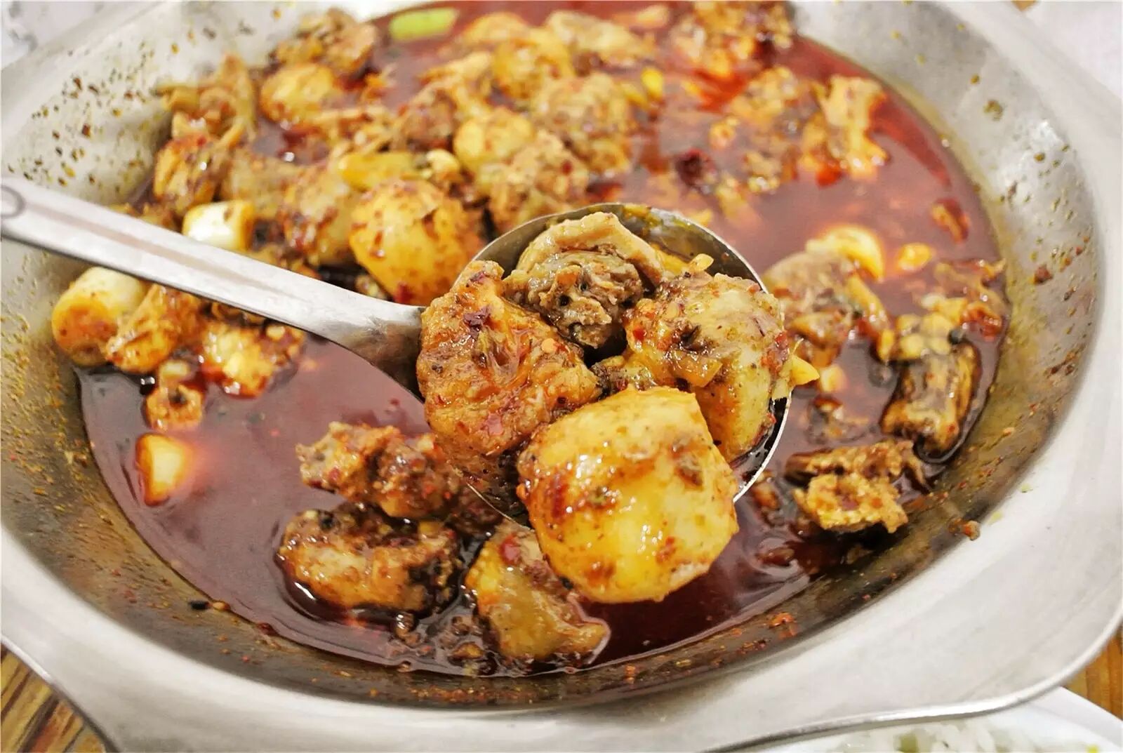 为了不失偏颇,我还是决定进店好好品鉴一番。春熙路上的老店依旧是不分昼夜地火爆,找个座位都要斗智斗勇。在热火朝天的店内可以看见每个人都吃得滋滋有味,顿时让我对他们的水准重新有了期待。