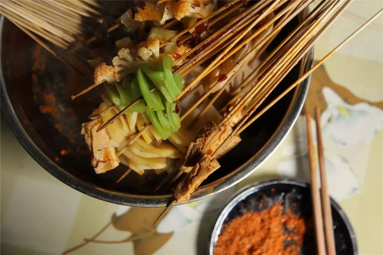 为了保证菜品新鲜,老板儿都是早上现买、现切、现串,数量有限,来晚了也就没得挑头了。