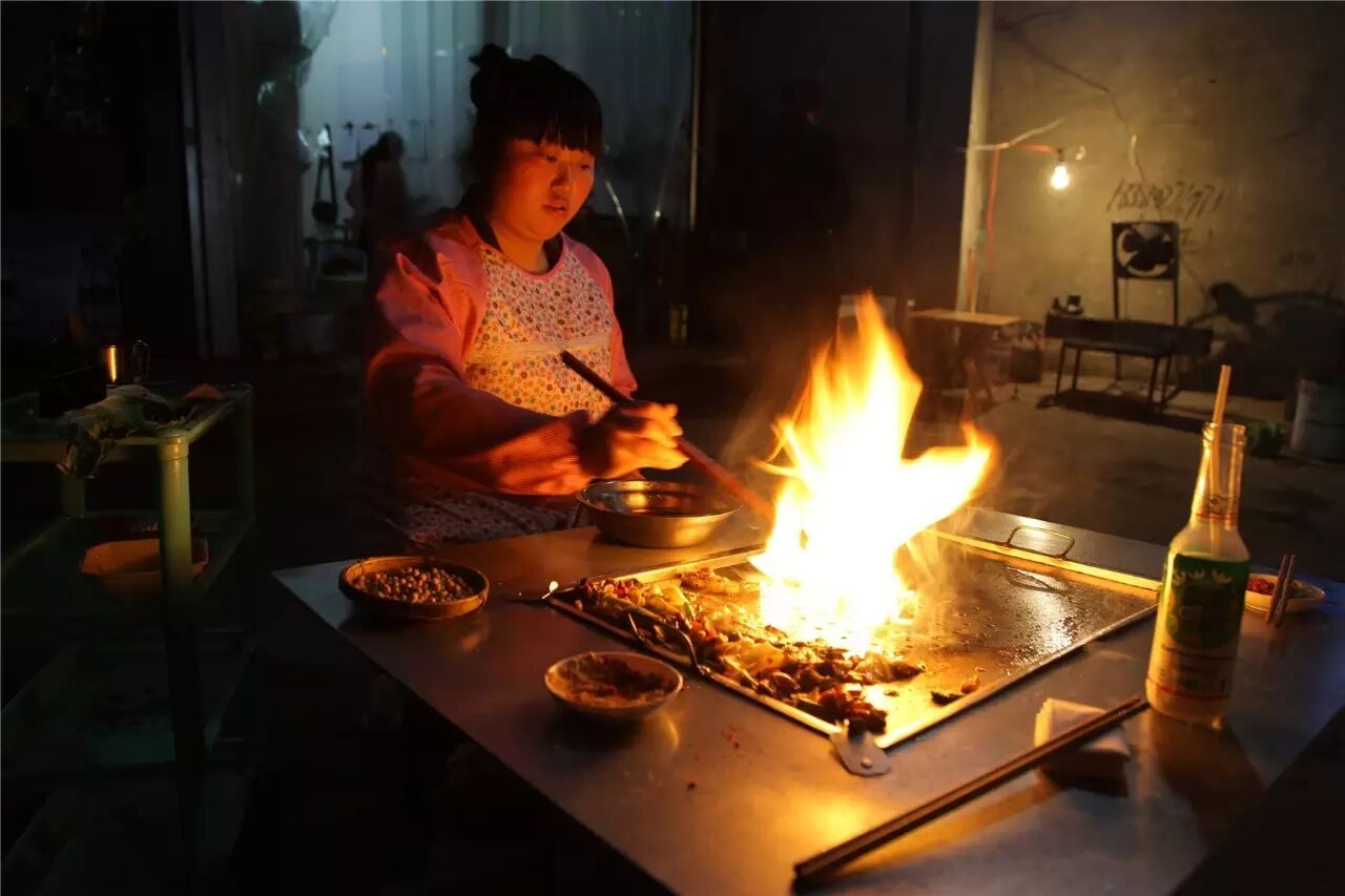 这里主要以炭火铁板烤为主,炉子是现生火的,生火的过程就像是小时候玩烟花的情景,火炎四迸,菜到齐后会老板跟食客对立而坐,炒起烤肉来,娴熟的动作仿佛是在铁板上画画,视听味觉的三重享受。