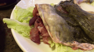 现在火锅的菜品都非常讲究新鲜,甚至出现了在店里开辟菜园,想烫什么自己去采摘的风潮(颇有点国外米其林餐厅的理念)。我这次在店里点了一份牛蛙,结果正要放下锅的时候发现它的心脏还在跳!真是吓死鹅宝宝了!!