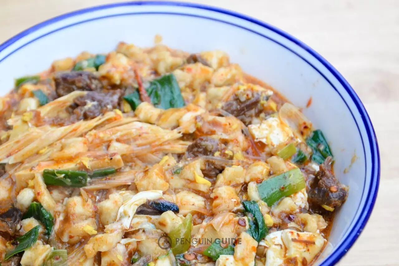 马峰家以生肉小炒出名,选料讲究,口味地道。调味比较重口,因此格外适合加碗底蛋。虽然香料浓郁,但肉的鲜香依然清晰可辨。一碗油香酸辣,吃得人额角冒汗。