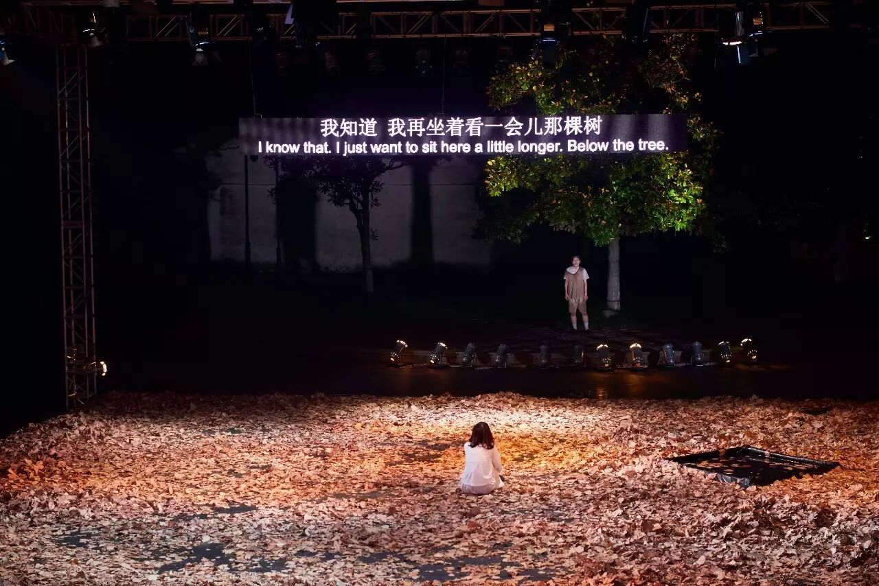 去年口碑最好的《樱之园》则诞生在诗田广场。剧场内铺满金色落叶,最深处那棵树完美呼应了契诃夫原作《樱桃园》。