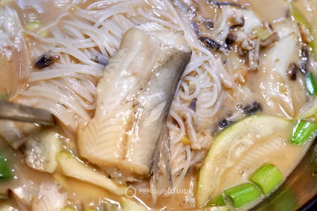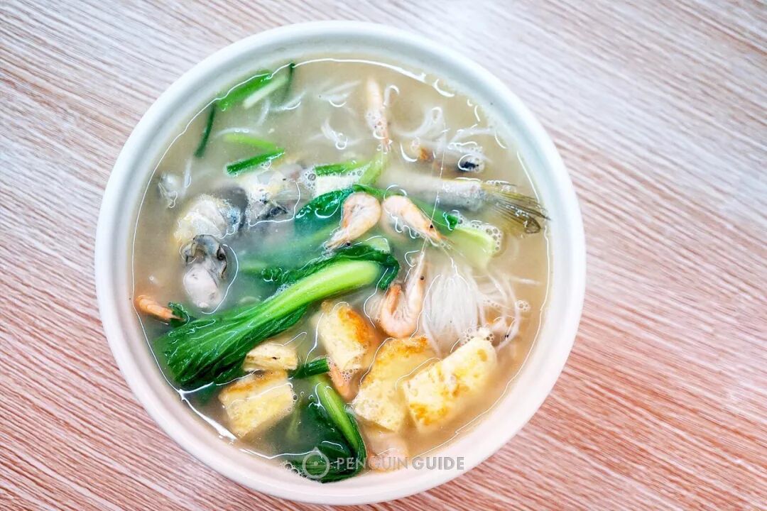配料就很自由了,可以只是简单地炒个蛋加肉汤,也可以是丰盛的一碗海鲜粉。整条小黄鱼、鲜牡蛎、鲜虾、虾干、鳗鱼干……这样一碗只用二十块。恨不得喝光汤底。